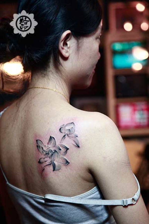 水墨莲花纹身_植物纹身图案大全_纹身图吧