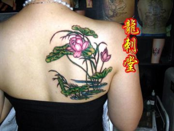 荷花纹身莲花荷叶纹身武汉纹身_植物纹身图案大全_纹身图吧