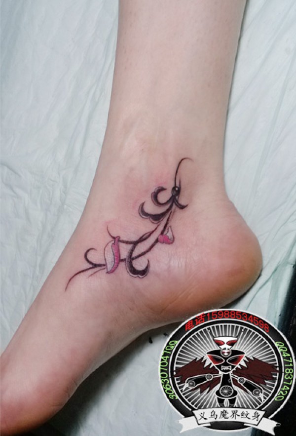 美女脚踝莲花藤蔓刺青_植物纹身图案大全_纹身图吧