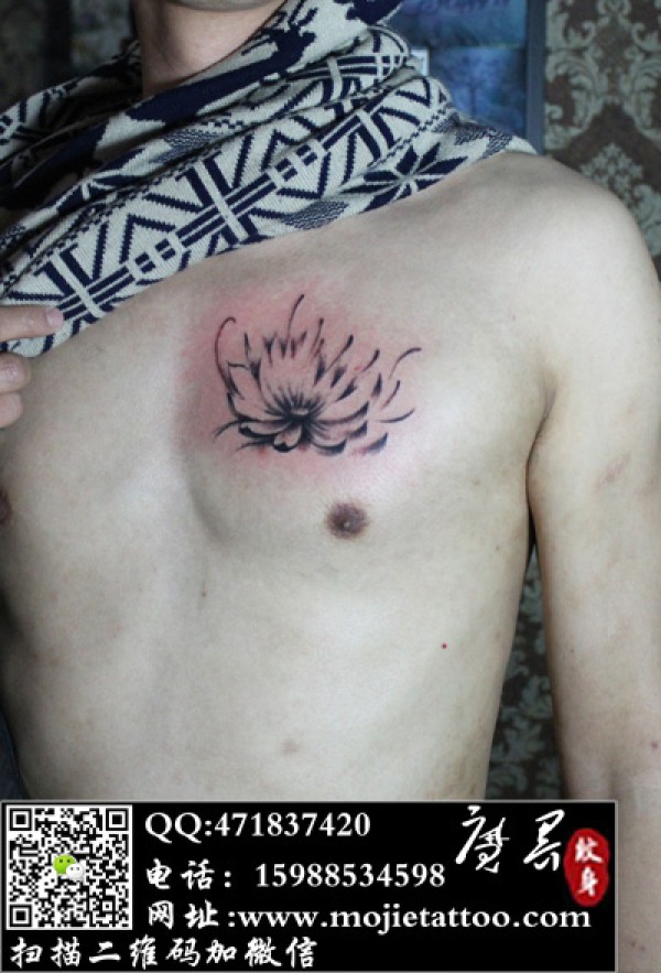 胸口莲花纹身_植物纹身图案大全_纹身图吧