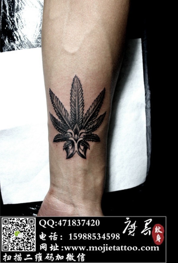 手臂叶子纹身_植物纹身图案大全_纹身图吧