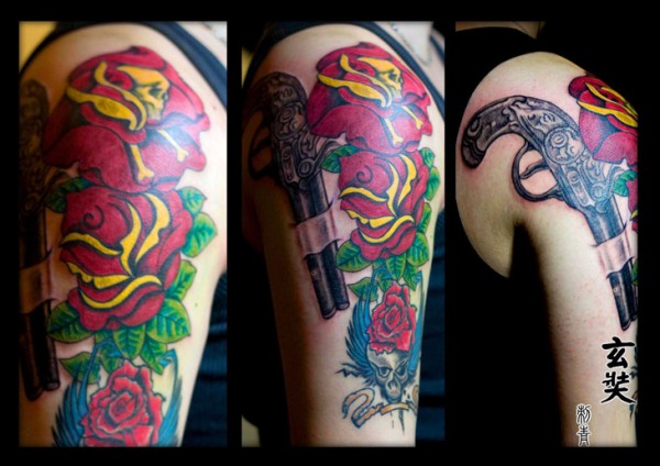 花胸左轮*纹身_植物纹身图案大全_纹身图吧